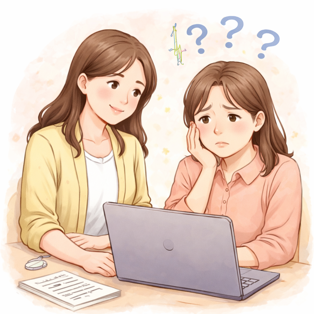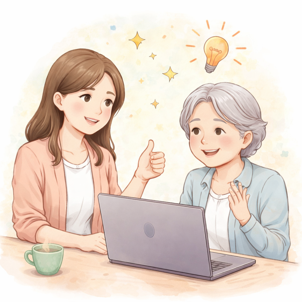 パソコン教室 優しく、確実に。 あなたのペースで身につく パソコン教室 パソコンが苦手でも大丈夫。「わからない」を一つずつほどきながら、仕事や日常で“使える”スキルを身につけます。 お問い合わせはコチラ ご利用の流れを見る こんな方におすすめです 仕事で急にパソコンが必要になったWord/Excelが苦手で毎回つまずく以前習ったけど、結局よく分からない自分のペースで、やさしく教えてほしいわからないところがあって、ピンポイントで聞きたいマンツーマンで教えてほしいスマホの操作に困っている何を聞けばいいか分からないところから相談したい 選ばれる理由 「何が分からないか分からない」状態から大丈夫 パソコンが苦手な方ほど、「何を聞けばいいのか分からない」ものです。私は、操作の前に、今どこで困っているのかを一緒に整理します。言葉にできなくても大丈夫。一つずつ確認しながら進めるので、置いていきません。 あなたの目的に合わせて進める“完全オーダーメイド” 決まったカリキュラムはありません。仕事で必要なこと、日常で困っていること、あなたの「今すぐ何とかしたい」に合わせて内容を組み立てます。 ゆっくり・丁寧だから「できた」が積み重なる スピード重視の教室ではありません。分かったつもりで進むこともしません。操作だけでなく、「なぜそうなるのか」をかみくだいて説明するので、家に帰ってからも一人で操作できるようになります。「できた!」という小さな成功を重ねながら、自然と自信がついていく教室です。 パソコン教室│ご利用の流れ 01 お問い合わせ まずは、お問い合わせフォームからご連絡ください。「パソコンが苦手」「何から聞けばいいかわからない」どんな状況でも大丈夫です。相談内容はまとまっていなくてもOK。困っていることや、できるようになりたいことをわかる範囲でお知らせください。内容をお聞きして、対応できる案件は、単発の相談も承ります。※ 無理な勧誘や営業は一切行いませんので、ご安心ください。 02 内容の確認・ご案内 お問い合わせ内容を確認し、レッスン内容・進め方・対応方法についてご案内します。・基礎中心 または 実践重視・趣味利用 〜 仕事活用まであなたの目的やレベルに合わせて、無理のないプランをご案内し、料金をお知らせします。 03 日程調整 ご希望の日程を伺い、レッスンの日時を決めます。「ピンポイントで学びたい」「基礎からしっかり始めたい」どちらのご要望にも柔軟に対応可能です。パソコンが苦手な方でも、安心して進められるようサポートいたします。※オンラインが苦手な方でも、しっかりサポートしますのでご安心ください。 04 安心してご利用いただくために・・・ ✔ 完全個別レッスン✔ 初心者の方も大歓迎✔ ゆっくり丁寧な指導一緒に、一歩ずつ確実にできることを増やしていきます。